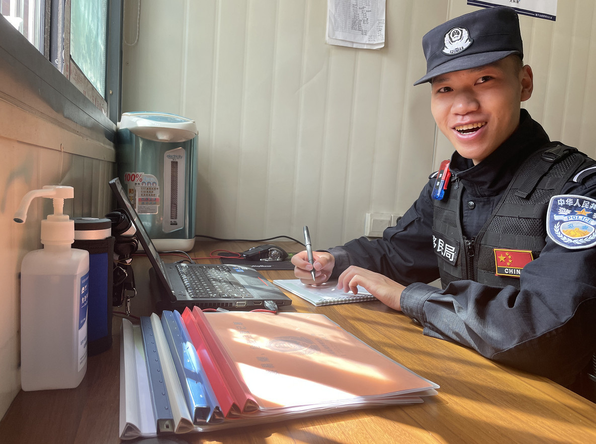 “兩個(gè)方艙,一個(gè)家。這里是我們進(jìn)行證件查驗(yàn)登記、執(zhí)勤裝備和防疫物資放置的地方……,這里是我們做飯用餐、洗漱方便、住宿生活的地方……”,已經(jīng)在這里工作近三年的轉(zhuǎn)改新警周建馳向新來的學(xué)員朱正偉介紹到這里的情況,舉手投足之間洋溢著神秘的喜悅和滿足。