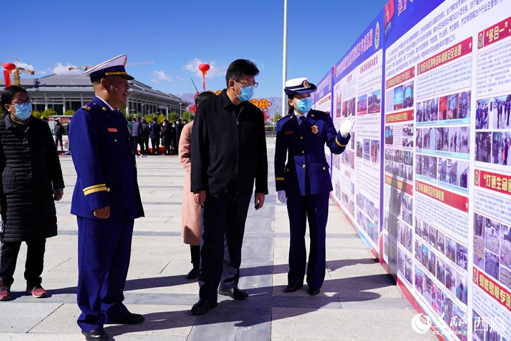 參觀(guān)拉薩市消防救援隊(duì)伍改制轉(zhuǎn)隸三周年成果展。人民網(wǎng) 次仁羅布攝
