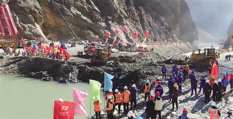拉哇水電站成功截流現(xiàn)場。