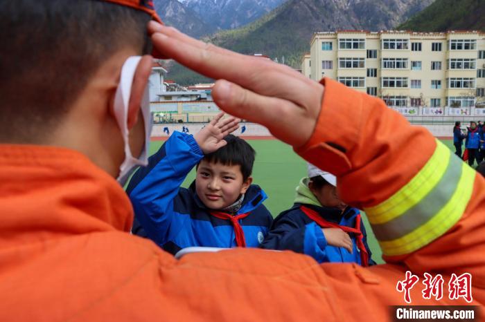孩子們向森林消防指戰(zhàn)員致敬。李國燾 攝
