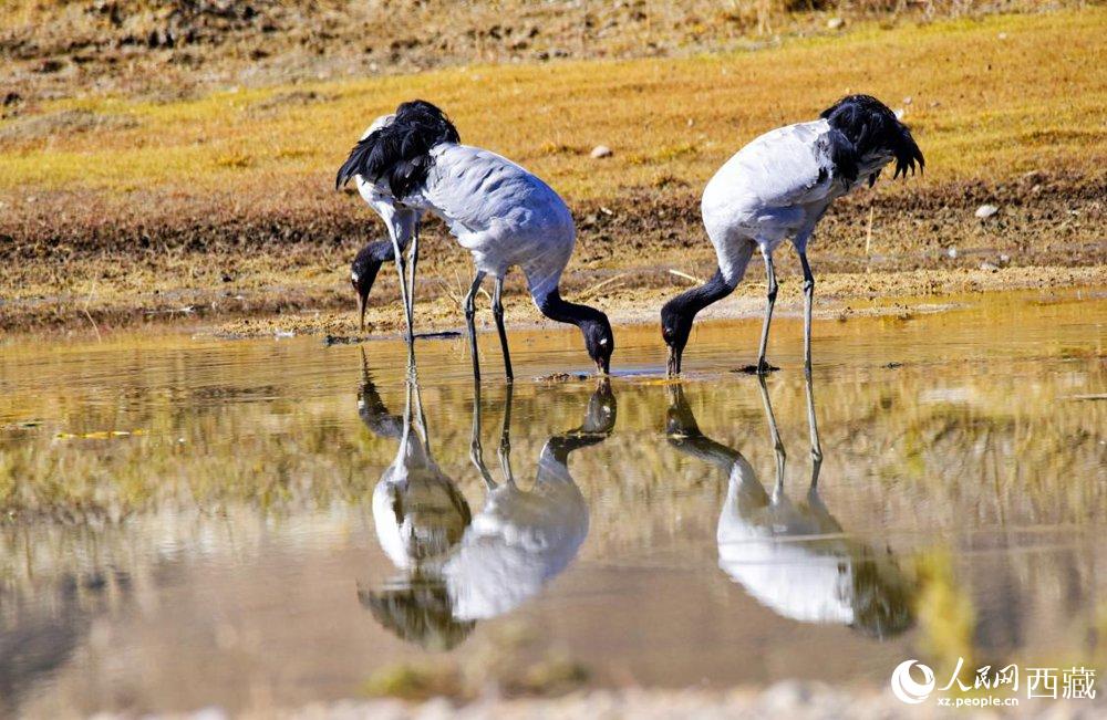 黑頸鶴。人民網(wǎng) 李海霞 攝