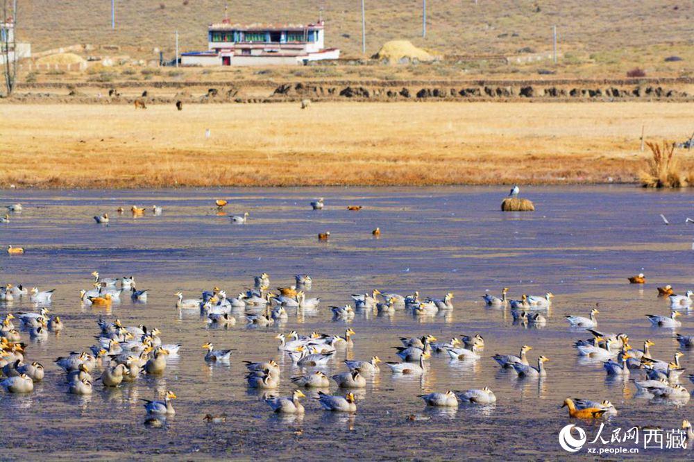 近年來,西藏不斷加大野生動物保護力度,維護生物多樣性,越冬水鳥種群數(shù)量呈逐年上升趨勢。西藏中南部“一江三河”流域的河谷、農(nóng)田是越冬水鳥的主要夜宿地和覓食地。今年年初,西藏自治區(qū)高原生物研究所在該流域開展了越冬水鳥的監(jiān)測工作,共記錄越冬水鳥42種,17萬余只,其中絕大部分為冬候鳥。在數(shù)量方面,以斑頭雁和赤麻鴨為代表的農(nóng)田活動水鳥為主,斑頭雁數(shù)量超過10萬只。此外,國家一級保護動物黑頸鶴的種群數(shù)量維持在8600只以上。