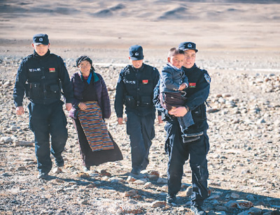普瑪江塘邊境派出所坐落于此,派出所的移民管理警察守護(hù)著轄區(qū)內(nèi)的祖國(guó)領(lǐng)土。民警們常在中國(guó)和不丹的邊境地區(qū)巡邏,那里冰川密布,碎石路下往往暗藏冰裂縫。巡邏途中,民警們會(huì)熱心幫助前來求助的牧民群眾?!班l(xiāng)親們有困難總是會(huì)想到我們?!泵窬⑼酱胝f。