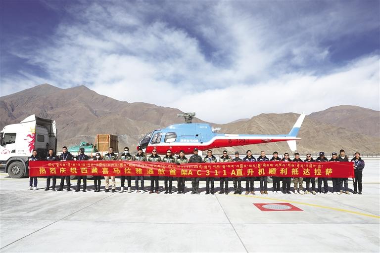 喜迎西藏首架國產(chǎn)AC311A直升機。圖由西藏喜馬拉雅通用航空有限公司提供