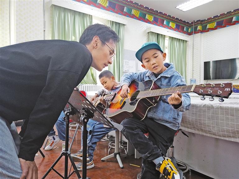 每到周末和寒假,音樂室里飄蕩著悠揚的扎念、二胡、吉他和揚琴聲;舞蹈空間、美術(shù)空間、多功能教室內(nèi),孩子們跳舞、畫畫、練藏文書法、學(xué)習(xí)英語;活動場上,孩子們踢足球、打籃球?!霸诨顒又行睦铮粌H能跟大家一起玩,還能學(xué)到不少東西,我很喜歡在這里學(xué)習(xí)。”學(xué)生宗尕吉高興地對記者說。活動中心的各種特色活動,充分滿足了孩子的興趣愛好,讓他們能夠張揚個性、快樂成長、培養(yǎng)特長、多元發(fā)展。