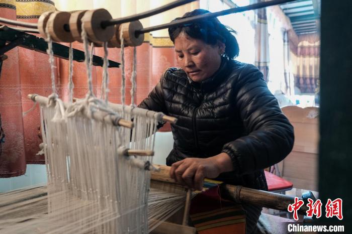 在他們家,記者看到了幾臺傳統(tǒng)藏式織機,玉珍說,這是用于織邦典(藏式毛織圍裙)的工具。2016年開始,玉珍運用編織技藝帶領村里的婦女共同成立了一個小規(guī)模的編織廠,“我們的羊毛線是自己染的,織出來的邦典質感更好,也不愁銷路,為家里增收不少?!彼f,編織讓大家實現(xiàn)了家門口就業(yè),也不耽誤家務,村里人很樂于接受。