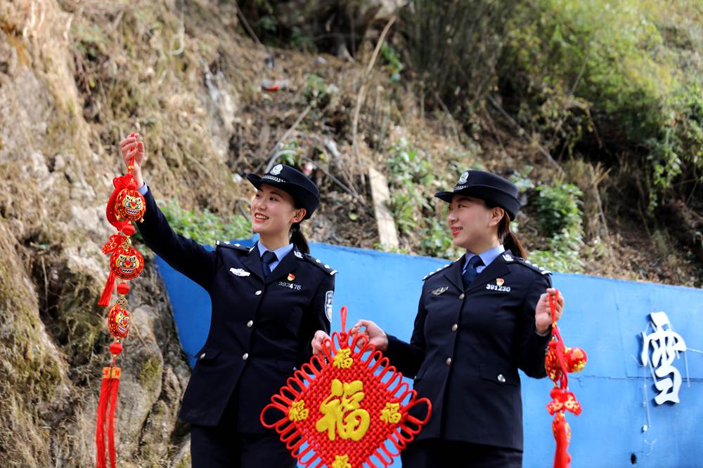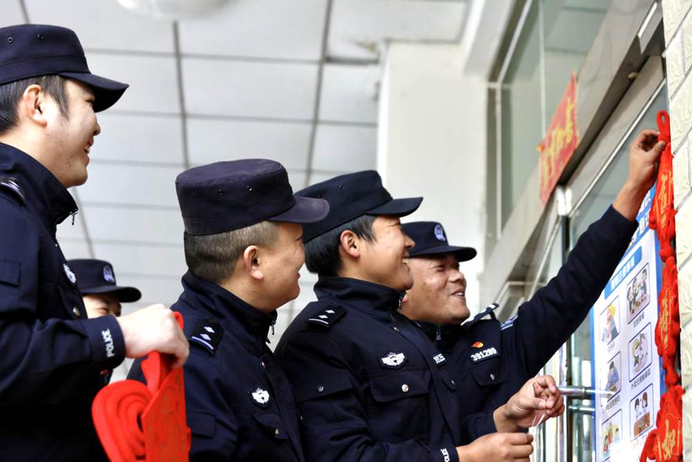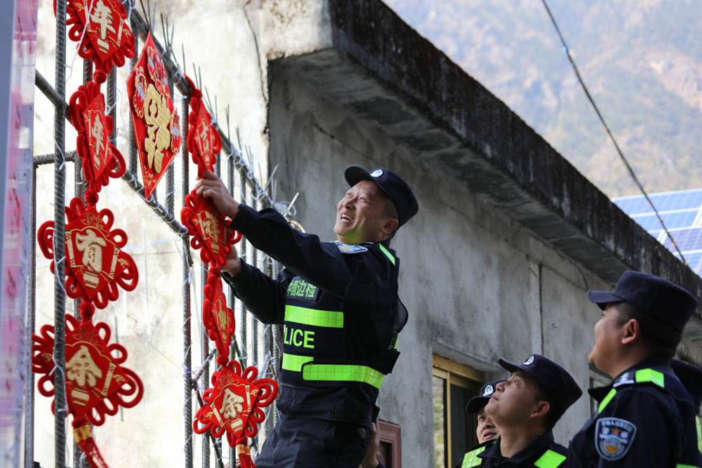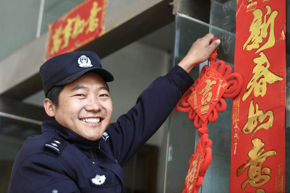 女警察拿著福字準(zhǔn)備去裝扮宿舍過(guò)年。索朗次仁攝