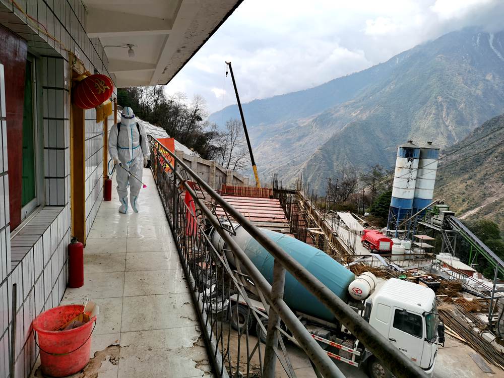 對(duì)施工區(qū)域及周邊環(huán)境進(jìn)行全面消殺。黃利平攝