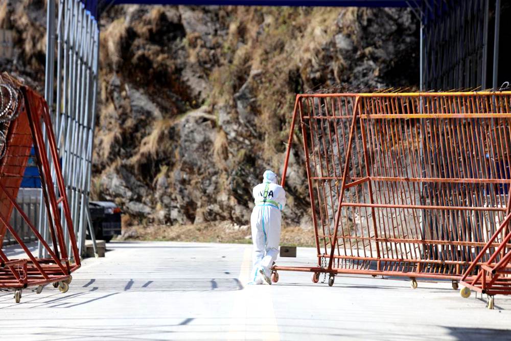 執(zhí)勤點(diǎn)民警正在打開(kāi)友誼橋阻攔門(mén)。索朗次仁攝