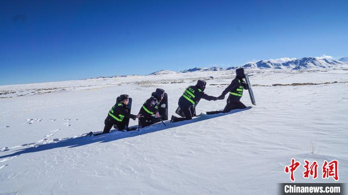 又經(jīng)過(guò)2個(gè)多小時(shí)的艱難跋涉,巡邏隊(duì)終于抵達(dá)目的地點(diǎn)位??辈?、鏟雪、描紅……一個(gè)環(huán)節(jié)也不能出錯(cuò),界碑就是生命,就是戍邊人的信仰。