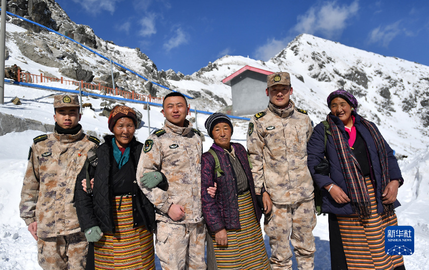 西藏軍區(qū)某邊防團的戰(zhàn)士們帶著愛人來到3位阿媽的家。