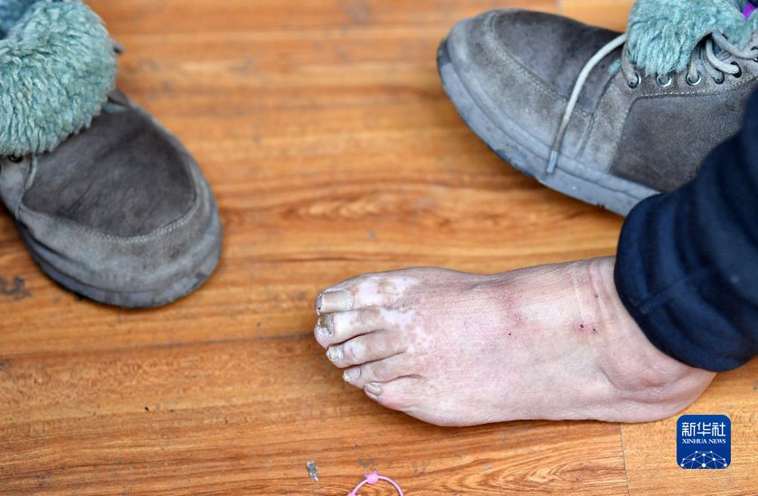 達吉阿媽的身上,如今仍留有送菜時的凍傷(1月26日攝)。新華社記者 覺果 攝