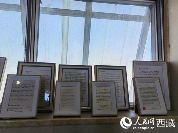 在哨所,最引人注目的是一封封被精心裝裱起來(lái)的信。落款都是:詹娘舍哨所全體官兵(收)。