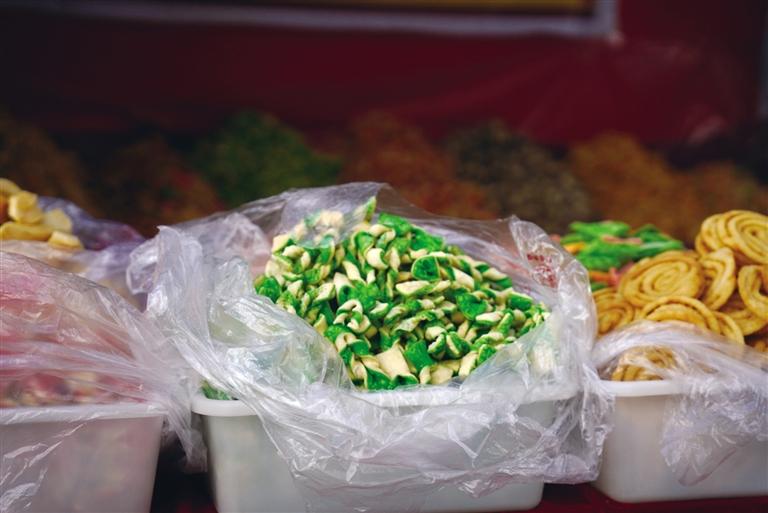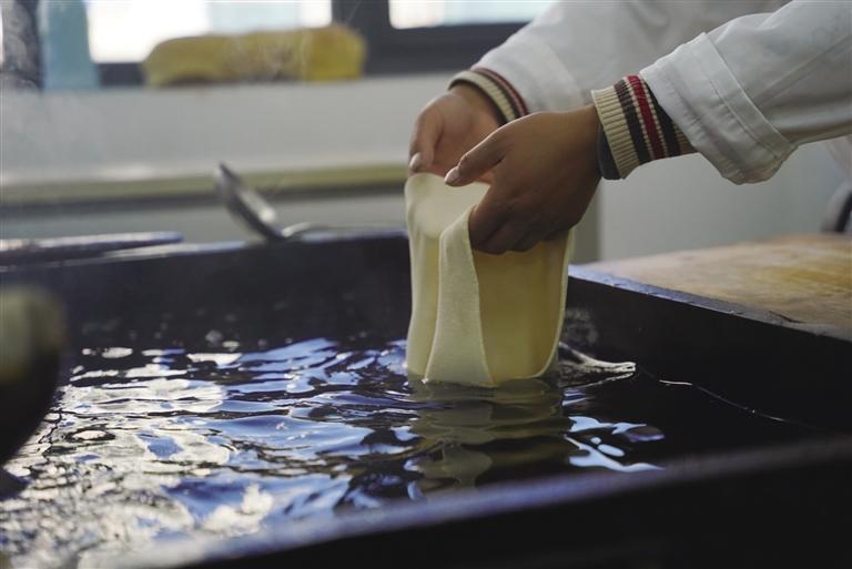 連日來,拉薩市區(qū)內(nèi)的眾多店鋪換裝成“卡賽”店。記者走進(jìn)城中的一家店鋪,店內(nèi)擺滿了精美的“卡賽”。另一旁,工作人員各自分工,有的正在將切割、染色好的面片捏成不同樣式,有的正在將做好形狀的面團(tuán)放到鍋里。