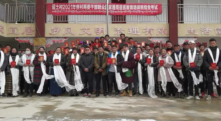 打造“領(lǐng)頭雁”,輻射帶動(dòng)群眾共同進(jìn)步?!皻q歲鬧元宵,轟天鑼鼓敲”,進(jìn)一步讓“學(xué)習(xí)”之風(fēng)在基層助力“好學(xué)”之苗生根發(fā)芽,工作隊(duì)在元宵節(jié)開展“2021年度國家通用語言教育培訓(xùn)結(jié)業(yè)典禮”,從全村116名參訓(xùn)人員中評(píng)選出“學(xué)習(xí)之星”1名,“進(jìn)步之星”2名進(jìn)行表揚(yáng)表彰,樹立學(xué)習(xí)榜樣,激勵(lì)對(duì)標(biāo)對(duì)表,努力學(xué)習(xí)國家通用語言文字,有利于促進(jìn)各民族交往交流交融。