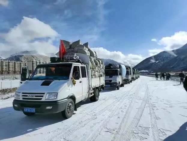 格松達(dá)吉一行經(jīng)驅(qū)車(chē)約6個(gè)小時(shí),行程近240公里,7輛救災(zāi)物資運(yùn)輸車(chē)安全到達(dá)目的地,兄弟縣鄰近鄉(xiāng)的牧民朋友早已在公路兩側(cè)等候,他們用一條條哈達(dá)、一句句“謝謝”向來(lái)自金嶺鄉(xiāng)的友人表達(dá)敬意和感謝。