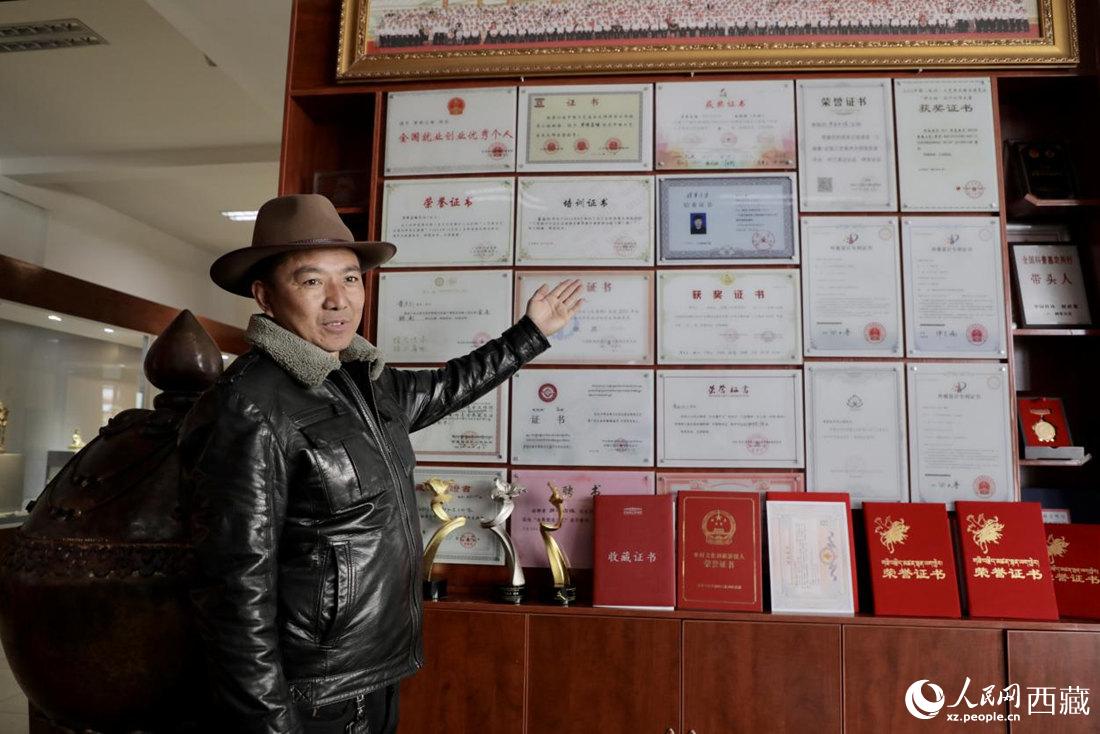 2012年傳承人羅布占堆獲中國工藝美術(shù)大師稱號。人民網(wǎng) 次仁羅布攝
