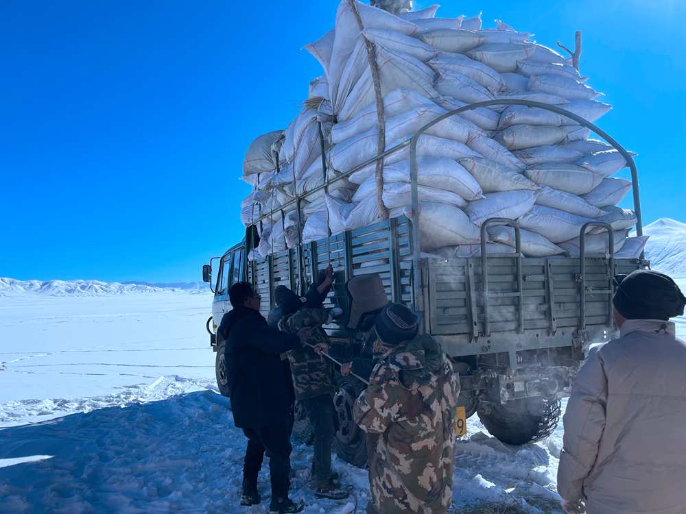 改則縣林草局工作人員把草料送到管護(hù)站,管理員們?cè)侔堰@些草料送到藏羚羊棲息比較多的地方。于是,接下來(lái)的兩天,工作人員們就一直在這片廣袤的草場(chǎng)上撒布草料,希望幫助藏羚羊們度過(guò)這個(gè)格外寒冷的冬天。前前后后,半個(gè)月下來(lái),改則縣的工作人員撒出去十幾噸的草料,幫助很多藏羚羊度過(guò)了這個(gè)缺少食物的冬天。在改則縣,23個(gè)管護(hù)站,二百多名管護(hù)員,看管著十萬(wàn)多平方公里的草場(chǎng),他們對(duì)于轄區(qū)的草木生靈、萬(wàn)水千山都很是熟悉。哪里常棲息著什么動(dòng)物,他們多是信手拈來(lái)。