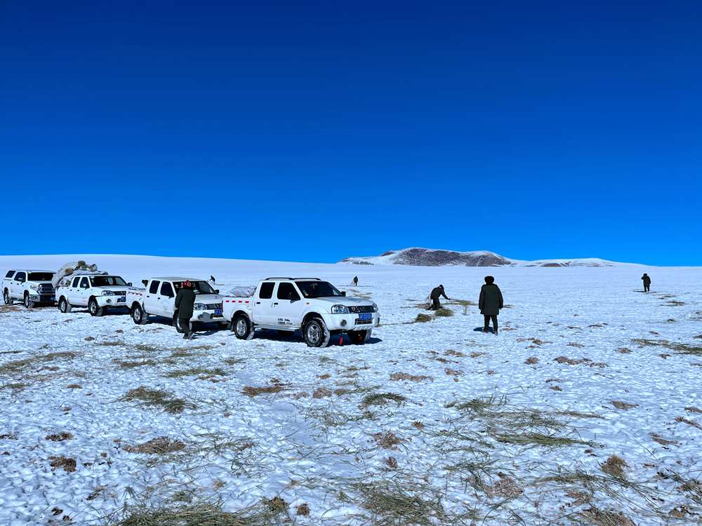 剛開(kāi)始,管護(hù)員和林草局工作人員只投放了一半的干草到草地上。“咱們也是第一次干,誰(shuí)知道這些藏羚羊是否‘領(lǐng)情’?”仁增羅布笑著說(shuō)。