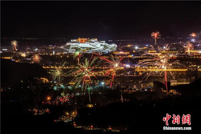 2021年2月10日晚,藏歷新年辭舊迎新“古突”夜,拉薩夜空煙花璀璨。當(dāng)日是藏歷12月29日,自此,藏族民眾一年中最隆重的節(jié)日——藏歷新年的一系列活動(dòng)正式拉開(kāi)序幕。中新社記者 何蓬磊 攝