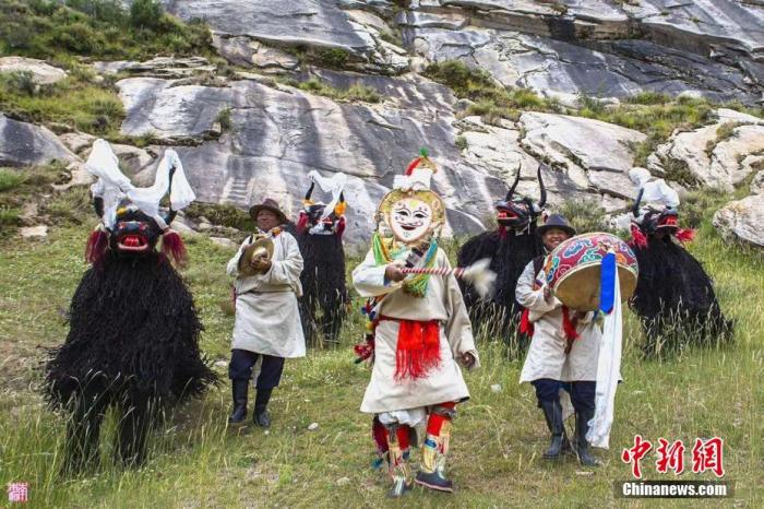 資料圖為桑珠帶領(lǐng)團(tuán)隊表演協(xié)榮“仲孜”。 中新社記者 貢嘎來松 攝