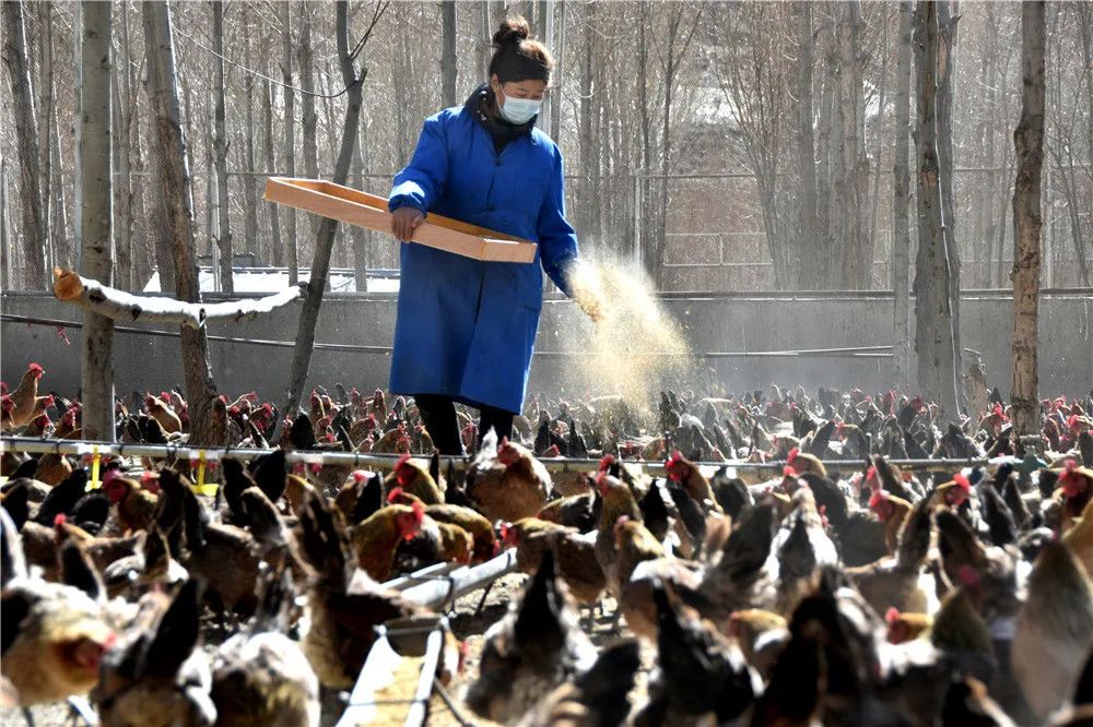 西藏洛扎縣次麥藏雞養(yǎng)殖合作社工作人員在給藏雞喂食(1月19日攝)。新華社記者 陳尚才 攝