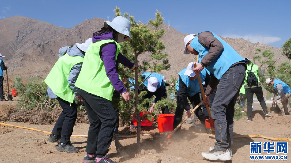 圖為植樹活動現(xiàn)場(4月16日攝)。新華網(wǎng)發(fā) 貢桑央吉(實(shí)習(xí)生)攝