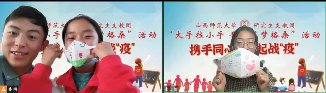 連線中,孩子們主動關心我校志愿者的在校情況,孩子們充滿關切的眼神讓志愿者們紛紛動容。志愿者們也向孩子們詳細的介紹了防疫自護知識,結合視頻、圖片等形式生動講述了團結一心、眾志成城的抗疫故事,向所有抗疫英雄們致敬,同時引導孩子們要深刻認識到作為一名中國人的幸福,勉勵孩子們永遠要團結在一起,共克時艱,遠在西藏也要做好防護,一字一句中滿是擔心和牽掛。隨后,孩子們拿出早已準備好的工具與志愿者們一同制作了口罩,口罩上寫滿了對哥哥姐姐的關心、祝福,天真可愛的臉龐上寫滿了戰(zhàn)勝疫情的決心。連線最后,孩子們將精心準備的才藝表演給志愿者們,是鏗鏘有力的《少年中國說》,是活潑動人的《給你一個擁抱》,是真誠溫暖的《聽我說謝謝你》,或許是那不太流暢的表達、不太連貫的動作,讓遠隔3700公里的傳遞更加有了溫度,讓兩顆互相牽掛的心靠的更近。