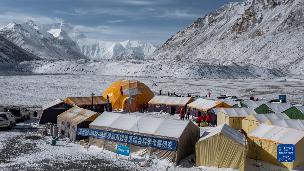 這是海拔5200米的珠峰登山大本營(5月1日攝,無人機(jī)照片)。新華社發(fā)