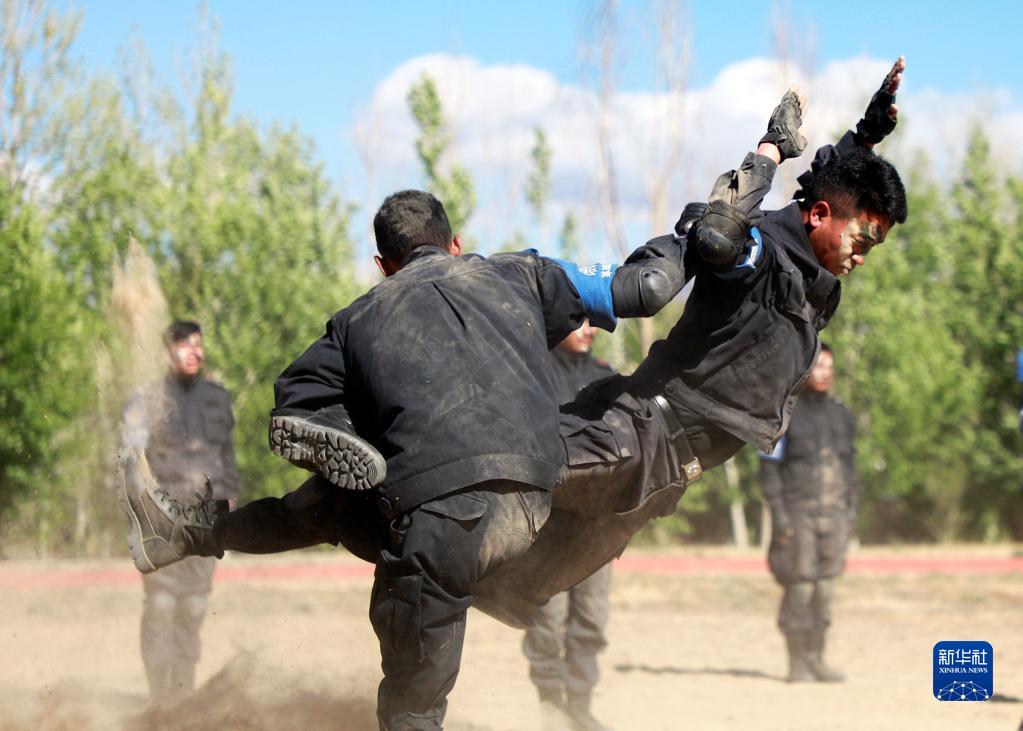 圖為移民管理警察正在進(jìn)行倒功配套演練(5月13日攝)。 新華社發(fā) 鄭琦山攝