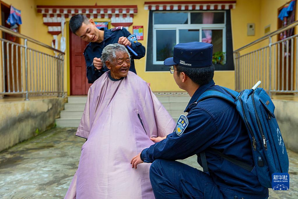 林芝邊境管理支隊(duì)上察隅邊境派出所“背包民警”在走訪中為轄區(qū)群眾理發(fā)(受訪者供圖)。