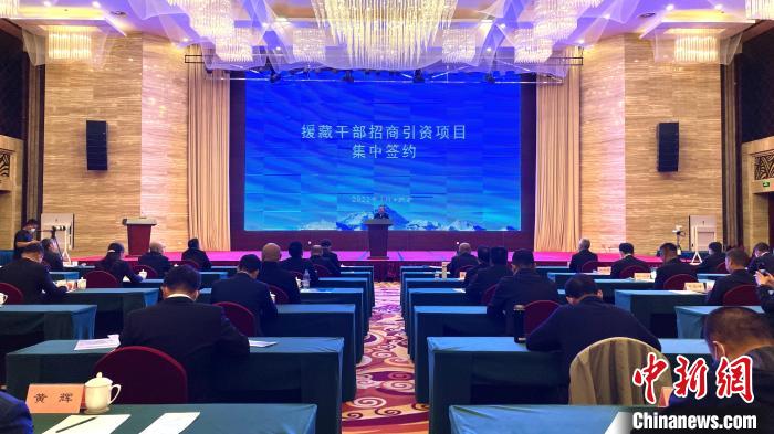 圖為援藏干部招商引資項(xiàng)目集中簽約線下現(xiàn)場。謝牧 攝