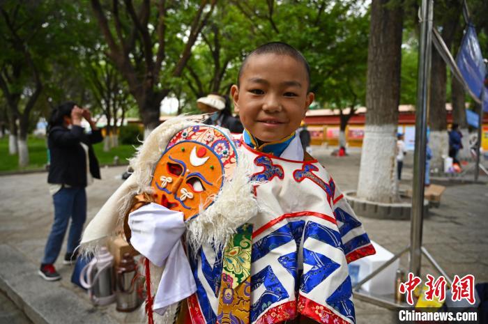 現(xiàn)場,藏戲、諧欽、堆諧、鷹笛吹奏等非遺歌舞展示吸引了眾多市民和游客前來觀看?;顒又?,白瑪多吉是藏戲演出中的小演員。他是城關(guān)區(qū)第二小學學生,從一年級到目前已經(jīng)學習了五年藏戲,這是他表演活動中規(guī)模最大的一次。他說:“開始是父母讓我去學習,現(xiàn)在已經(jīng)成為我自己的興趣愛好了,而且這樣的表演能夠讓我更有成就感,也變得更自信了。”