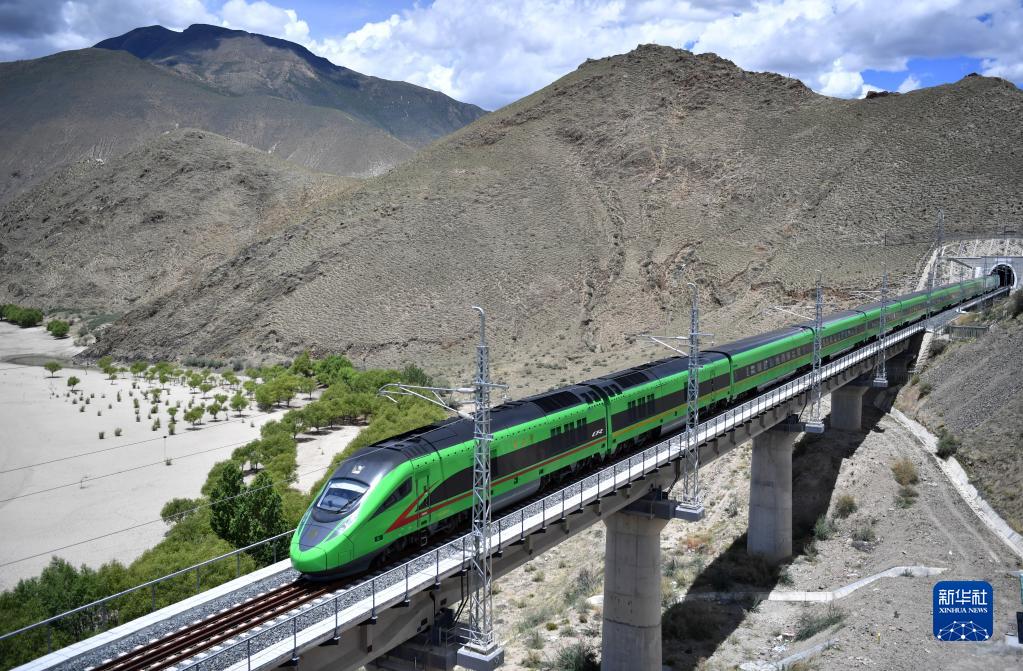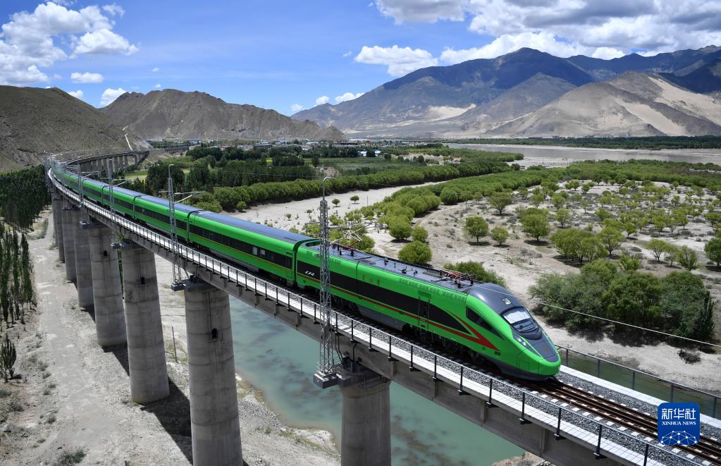 6月22日,復(fù)興號(hào)列車行駛在西藏山南境內(nèi)。新華社記者 覺(jué)果 攝