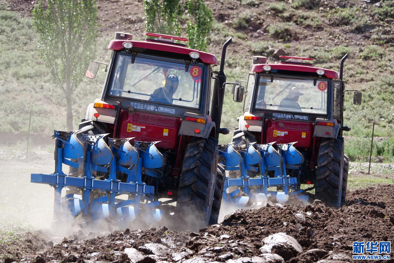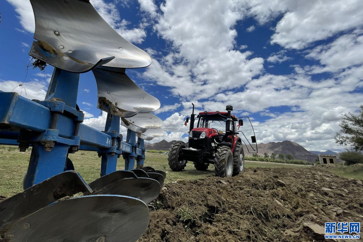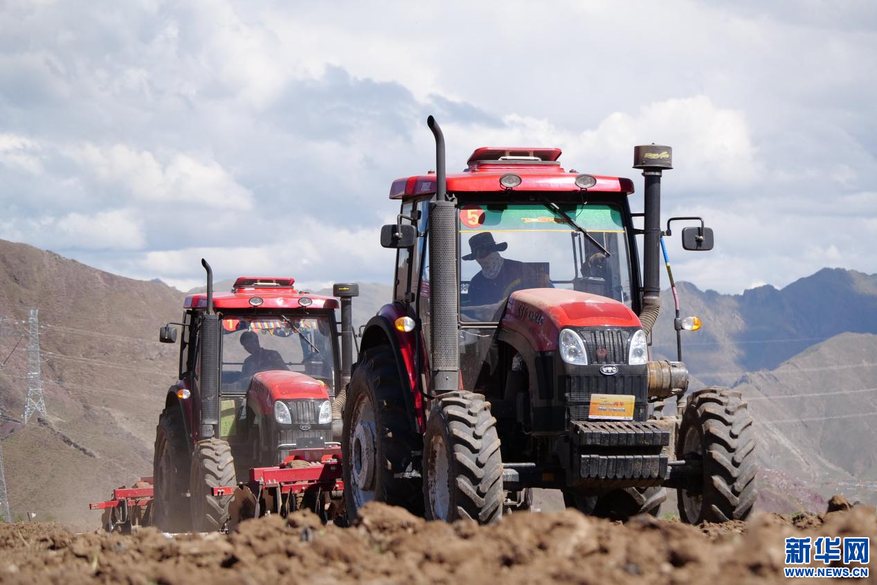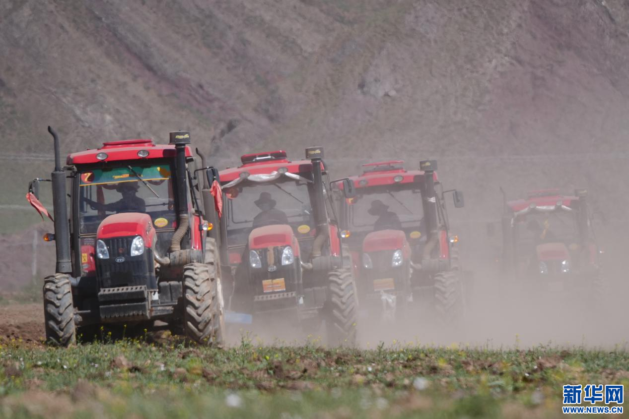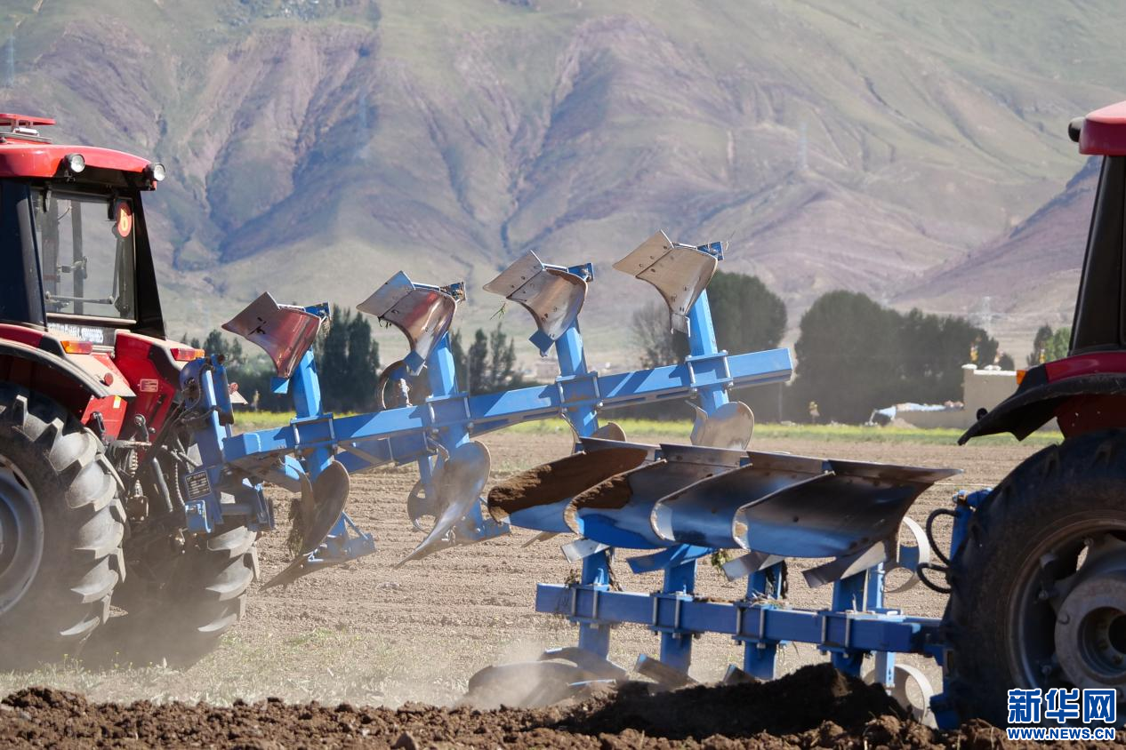 6月20日,甘曲鎮(zhèn)江角村農(nóng)機(jī)合作社的農(nóng)機(jī)在進(jìn)行播種。新華網(wǎng) 旦增努布 攝
