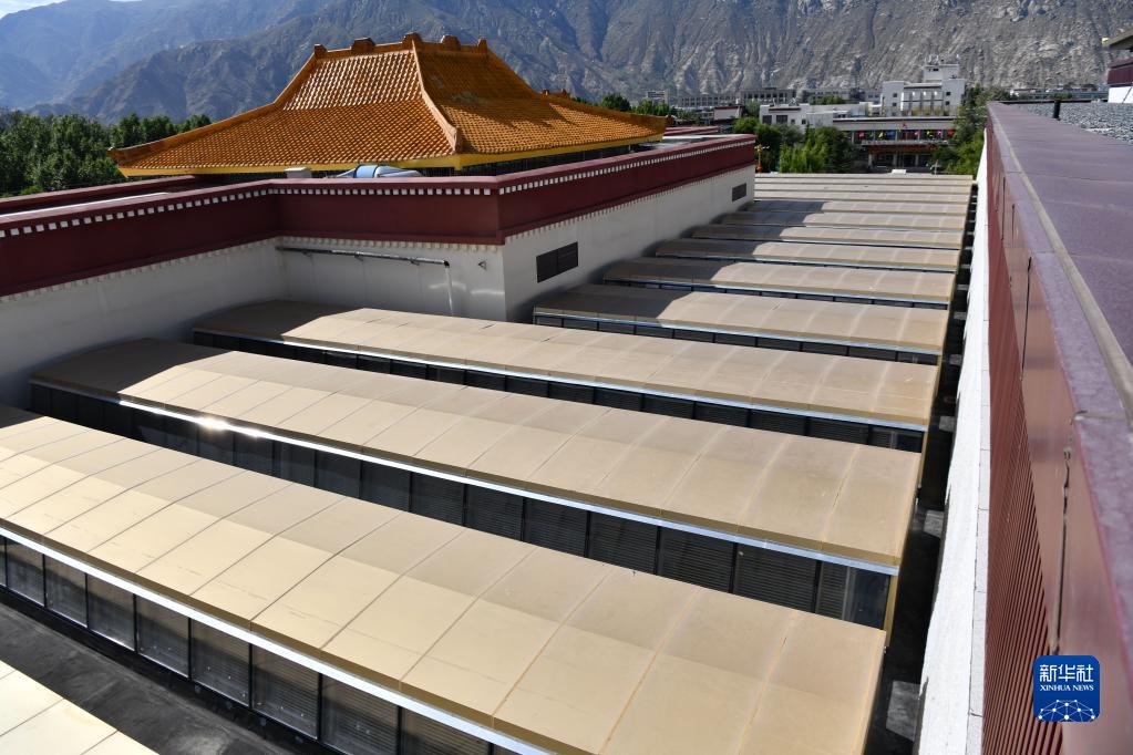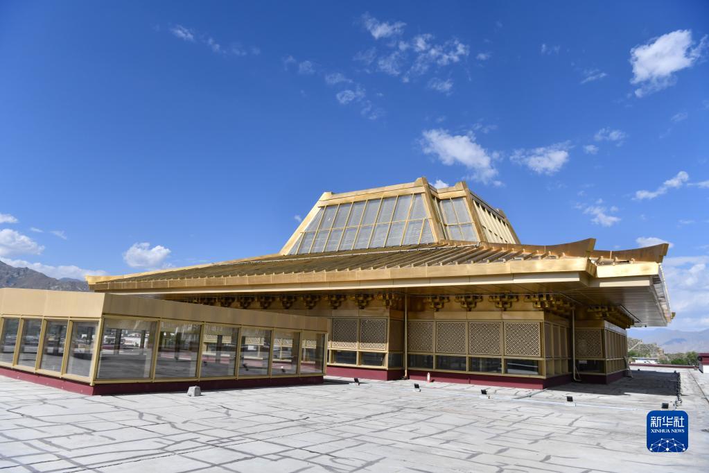 西藏博物館藏式金頂使用了輕型的鋼結(jié)構(gòu)(7月6日攝)。新華社記者 晉美多吉 攝