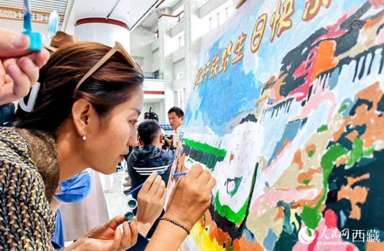 拉林鐵路開通一周年,旅客祝拉林鐵路生日快樂。人民網 李海霞攝