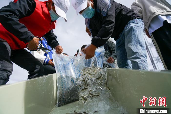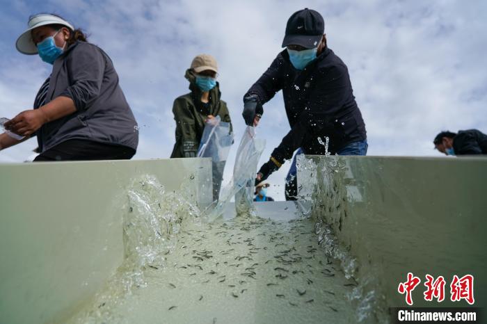 圖為西藏特有魚類增殖放流活動(dòng)現(xiàn)場(chǎng)?!〗w波 攝