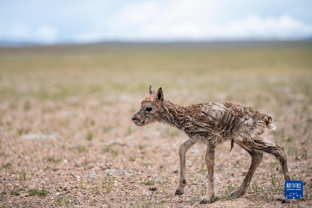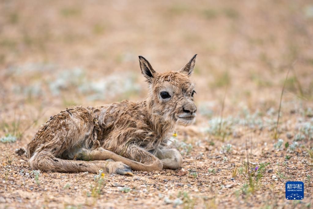 這是一只剛出生的藏羚羊幼崽(7月11日攝)。新華社記者 周荻瀟 攝