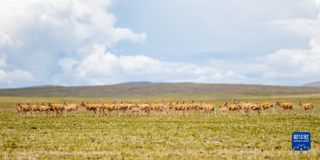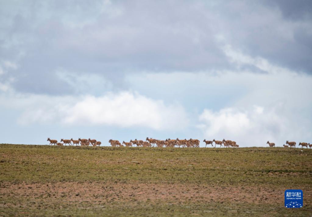 這是在羌塘國家級自然保護區(qū)內(nèi)拍攝的藏羚羊(7月11日攝)。新華社記者 周荻瀟 攝