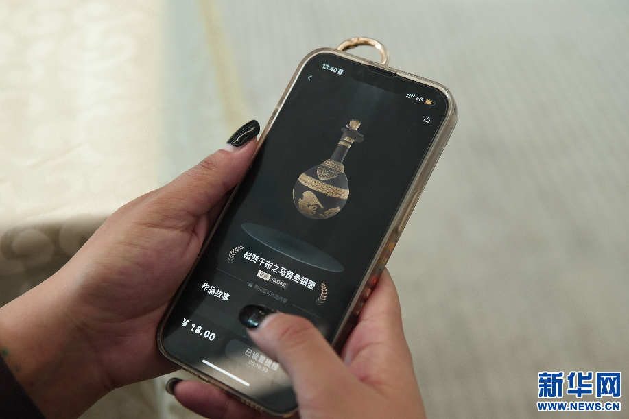 7月21日,用戶在手機(jī)端預(yù)約搶購西藏首個數(shù)字藏品《松贊干布之馬首圣銀壺》。新華網(wǎng)旦增努布 攝