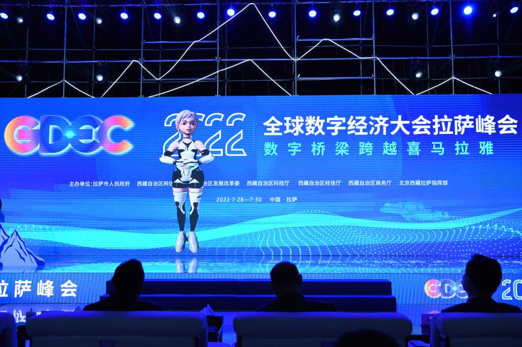 2022全球數(shù)字經(jīng)濟(jì)大會拉薩峰會數(shù)字虛擬人“達(dá)瓦”。(新華社發(fā) 旦增努布 攝)