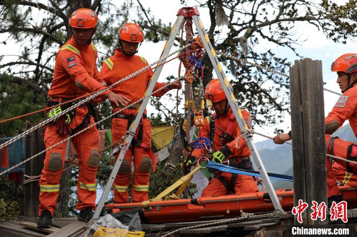 救援實(shí)戰(zhàn)訓(xùn)練中消防員T型救援。西繞拉翁 攝