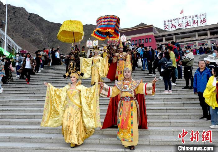 當晚,《文成公主》的演員們身著特色民族舞蹈服飾現(xiàn)身劇場外,巡游在慈覺林藏院風(fēng)情街,重現(xiàn)“公主”與“贊普”的和親盛況,并與來自五湖四海的觀眾近距離接觸,切身感受非比尋常的西藏文化。