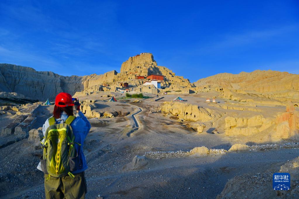 8月3日,游客在西藏札達縣拍攝古格王國遺址。新華社記者 張汝鋒 攝