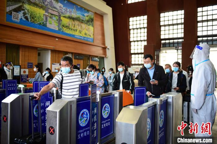 在拉薩火車(chē)站候車(chē)廳,記者觀察,旅客相較疫情前減少了很多。候車(chē)旅客中,有些是出藏游客,有些是返鄉(xiāng)的務(wù)工人員。除了拉薩往返日喀則的列車(chē)停運(yùn),其他列車(chē)正常運(yùn)行。當(dāng)日下午3點(diǎn)多,乘坐開(kāi)往北京列車(chē)的旅客在工作人員和民警的引導(dǎo)下,陸續(xù)檢票進(jìn)站。