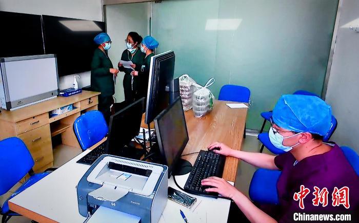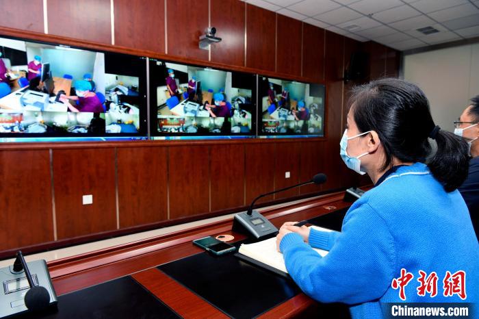 圖為西藏自治區(qū)第三人民醫(yī)院醫(yī)生在遠(yuǎn)程中心開(kāi)展查房工作?!±盍?攝