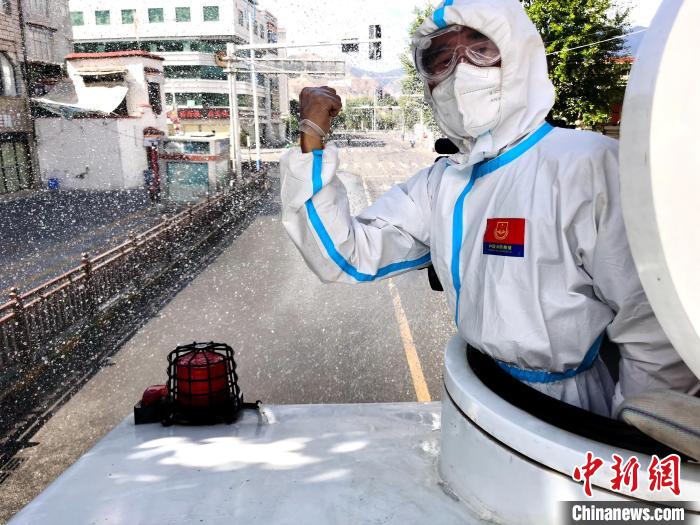 圖為拉薩消防指戰(zhàn)員在主城區(qū)進(jìn)行消殺?!±_市消防救援支隊(duì) 攝