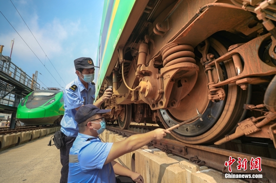 8月17日,北京車輛段西庫檢車間,檢修人員剛剛完成一列時(shí)速160公里動(dòng)力集中型復(fù)興號動(dòng)車組(俗稱“綠巨人”)的檢修工作。這里是京津冀地區(qū)唯一的“綠巨人”檢修維修基地,肩負(fù)著18列共計(jì)261節(jié)車輛的檢修任務(wù)。隨著暑運(yùn)逐漸迎來返校返程高峰,檢修人員也在加班加點(diǎn)為列車做好體檢工作,確保運(yùn)行安全。 中新社記者 賈天勇 攝