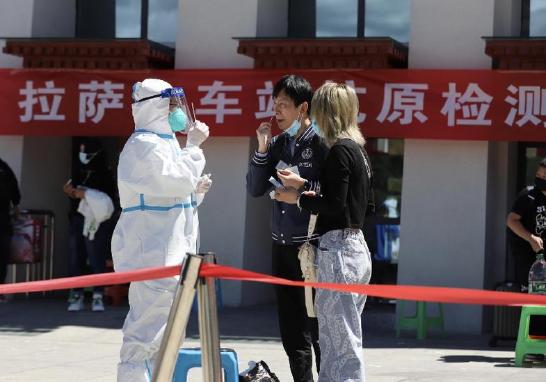 安檢大廳門(mén)口的工作崗?fù)?nèi),四張長(zhǎng)桌搭建起“二道”卡控點(diǎn),6名“大白”對(duì)進(jìn)站旅客進(jìn)行著一人不落的“三天兩檢”核酸檢測(cè)陰性證明查驗(yàn),查驗(yàn)通過(guò)后方可進(jìn)入“三道”卡控點(diǎn)進(jìn)行抗原檢測(cè)?!霸趪?yán)密落實(shí)自治區(qū)疫情防控各項(xiàng)措施中,我們不講條件、不打折扣、不惜代價(jià)。今天早上,我們邀請(qǐng)青藏集團(tuán)公司疾控專(zhuān)業(yè)人員對(duì)車(chē)站全員進(jìn)行了緊急的抗原檢測(cè)流程培訓(xùn),做足準(zhǔn)備全力應(yīng)對(duì)挑戰(zhàn)和考驗(yàn),確保執(zhí)行、落實(shí)到位?!崩_火車(chē)站黨委書(shū)記楊強(qiáng)說(shuō)。